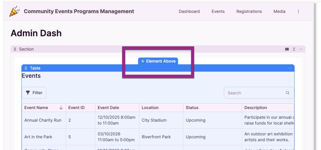 - Click Add Element
