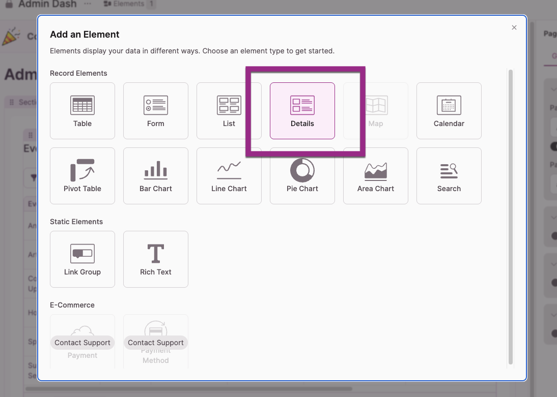 - Edit the Details element or add another