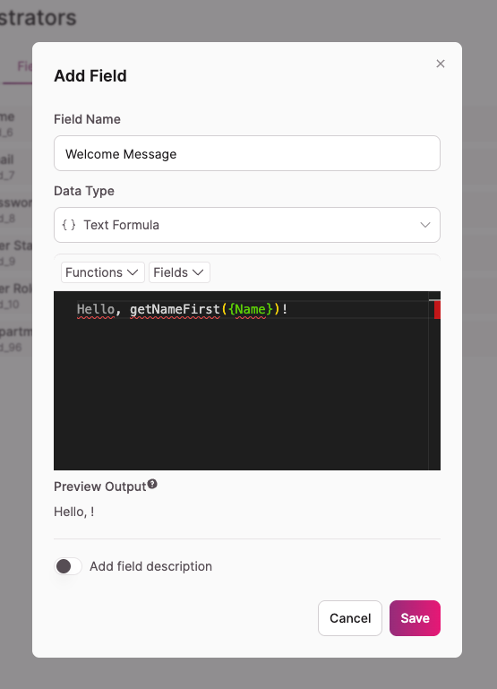 If you want to display something like "Hello, Jane!" instead of just a name field, you can build that message using a Text Formula field.