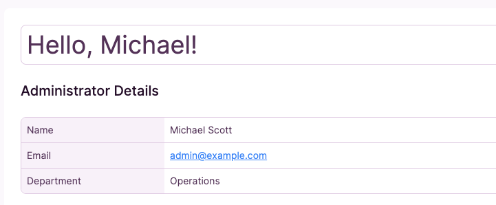 A Details element lets you display fields from a single record on a page. When that page is login-protected, Knack automatically scopes the Details element to the logged-in user's record - so each user sees their own information when they log in.