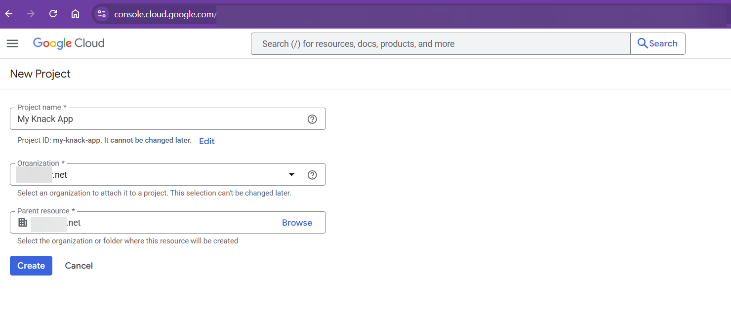 Before creating OAuth credentials, you need a Google Cloud project. A project is a container that organizes your Google Cloud resources — it's not tied to a specific domain, so you can use an existing project or create a new one.
