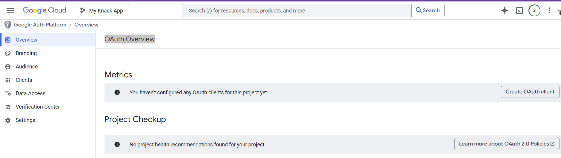 - In Google Cloud Console, go to APIs & Services > OAuth Overview.