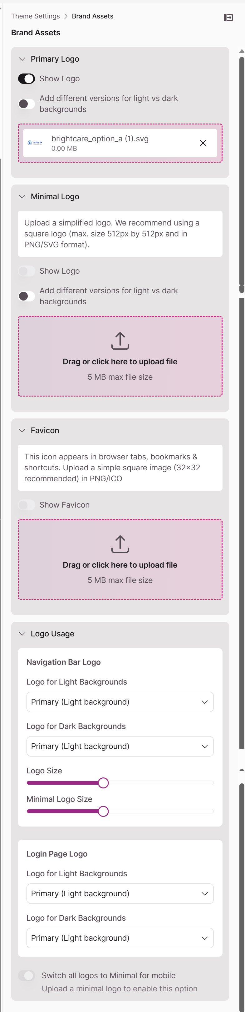 - How to upload and manage your primary and minimal logos