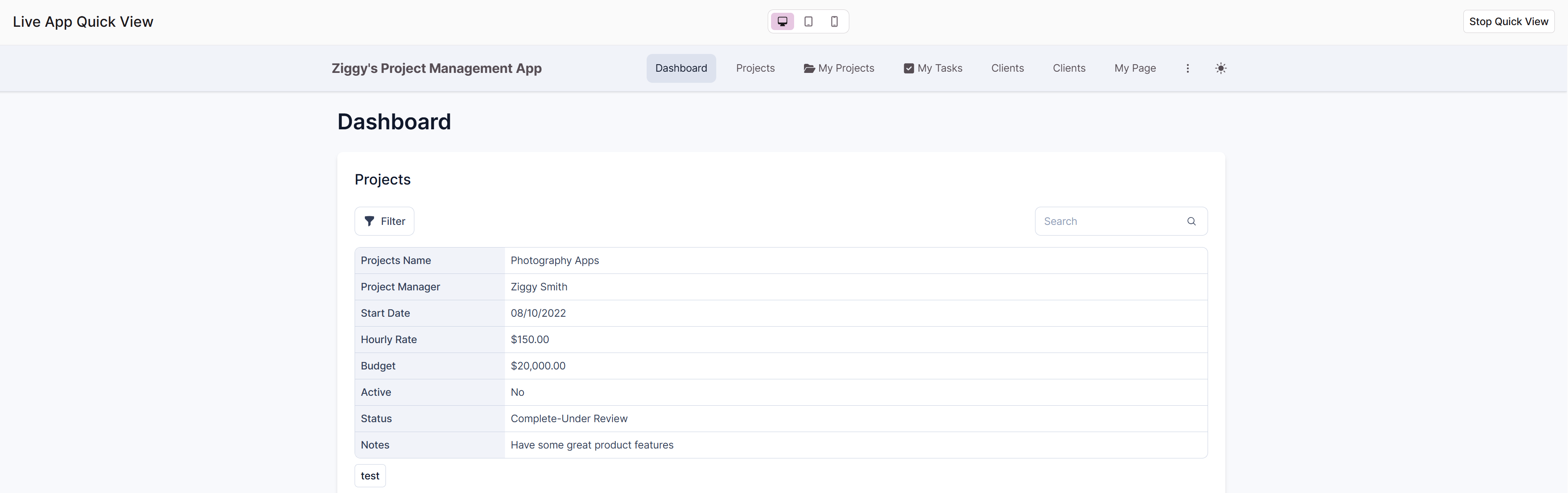 Want to see exactly how your theme changes will look in the actual app before committing? Click the Quick View button in the Theme Builder to open a live preview of your app with the current theme applied, even if you haven't saved your changes yet. This lets you test your color choices, fonts, and layout settings in the context of your real pages and data, making it easier to catch issues or refine your design before going live. Simply close the Quick View when you're done to return to editing.