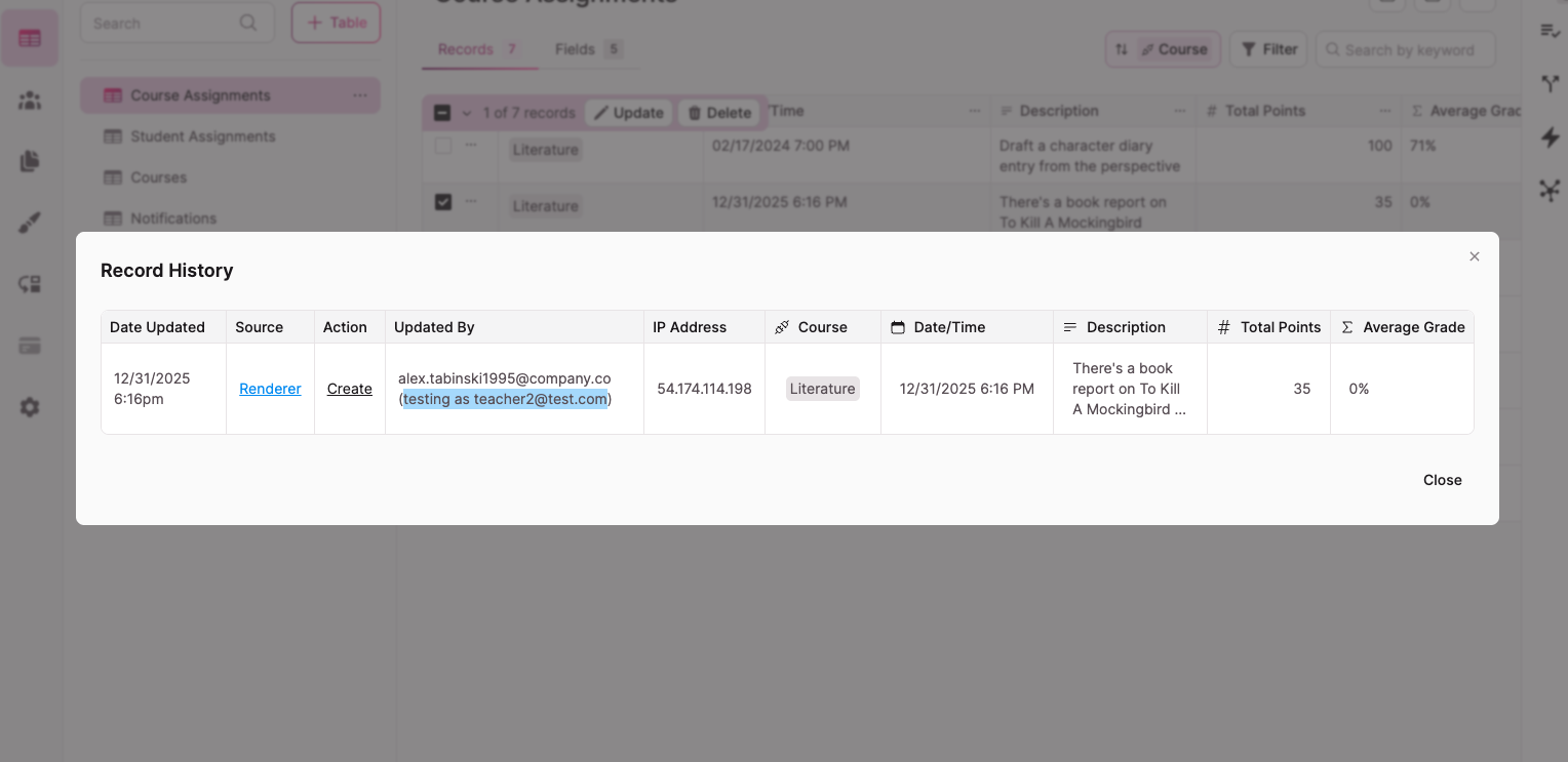 Record History and Activity Tracking