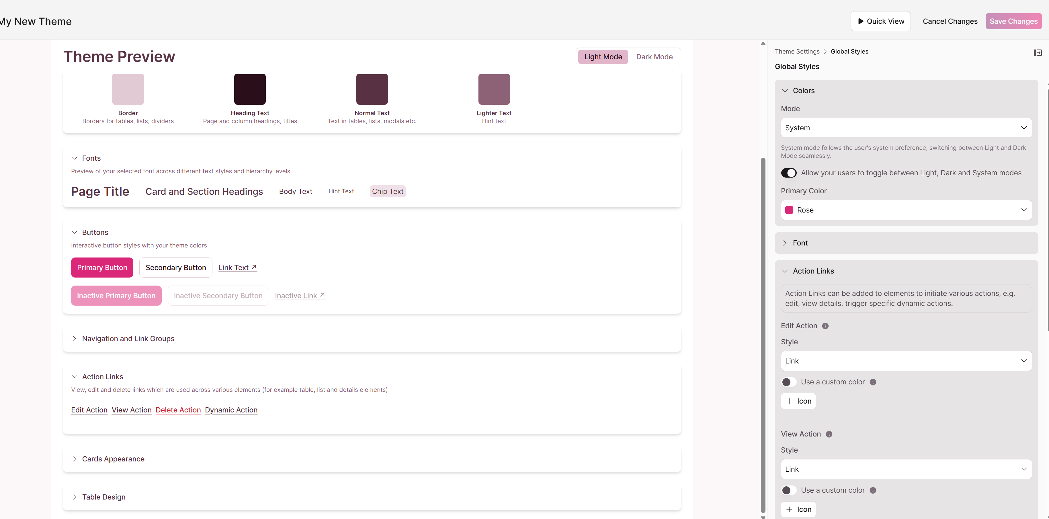 Action links—like Edit, View, Delete, and Dynamic Actions—now offer flexible styling options to match your design preferences.