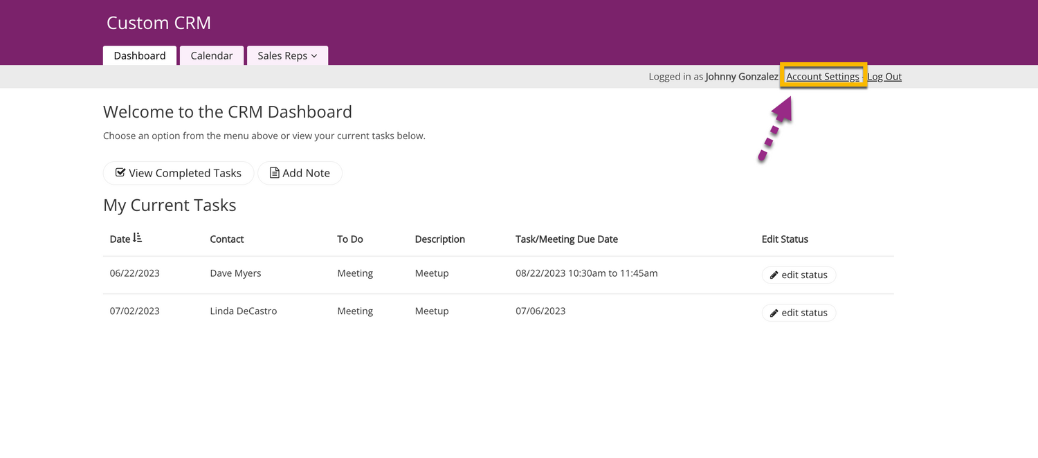 Account Settings: A dedicated utility page for when users needs to update their account information such as their name or change their password.