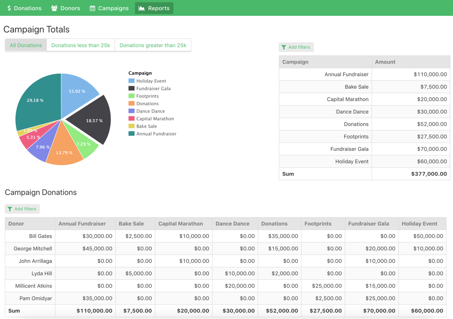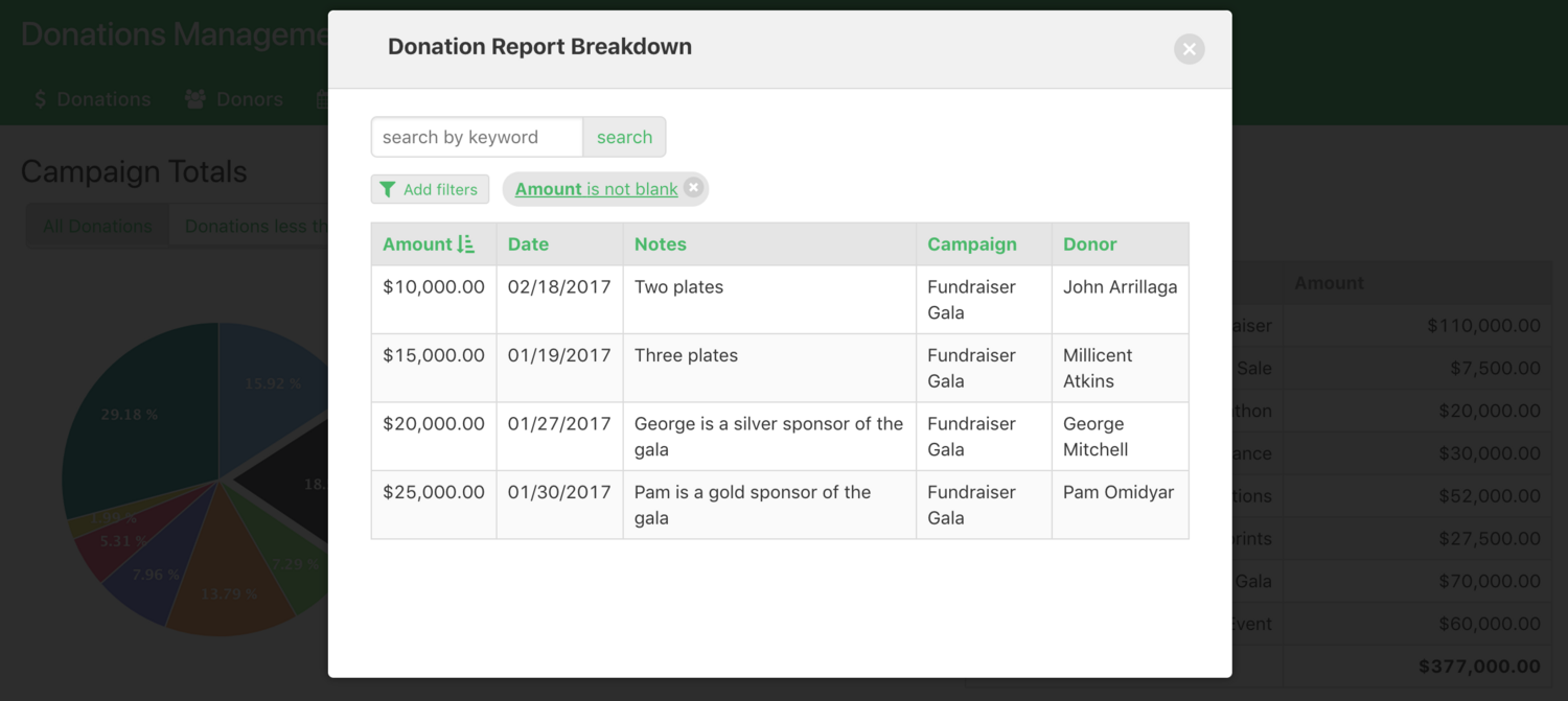 The search options in reports provide users with the ability to filter which records are included in these groups. Users have the control to determine which records are shown by using source filters, queries based on the logged-in user, user-added filters, and predefined filter menus.