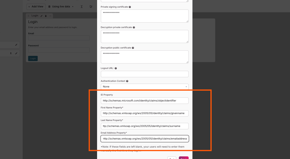 Note: The properties mentioned above can be customized within the Entra ID portal, providing you with flexibility in your configuration. However, it is essential to ensure that the values you use match the exact capitalization found in your Knack app.