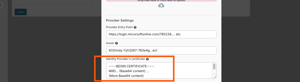 Then, paste this complete text into the Identity Provider's Certificate field in Knack, formatted as shown below: