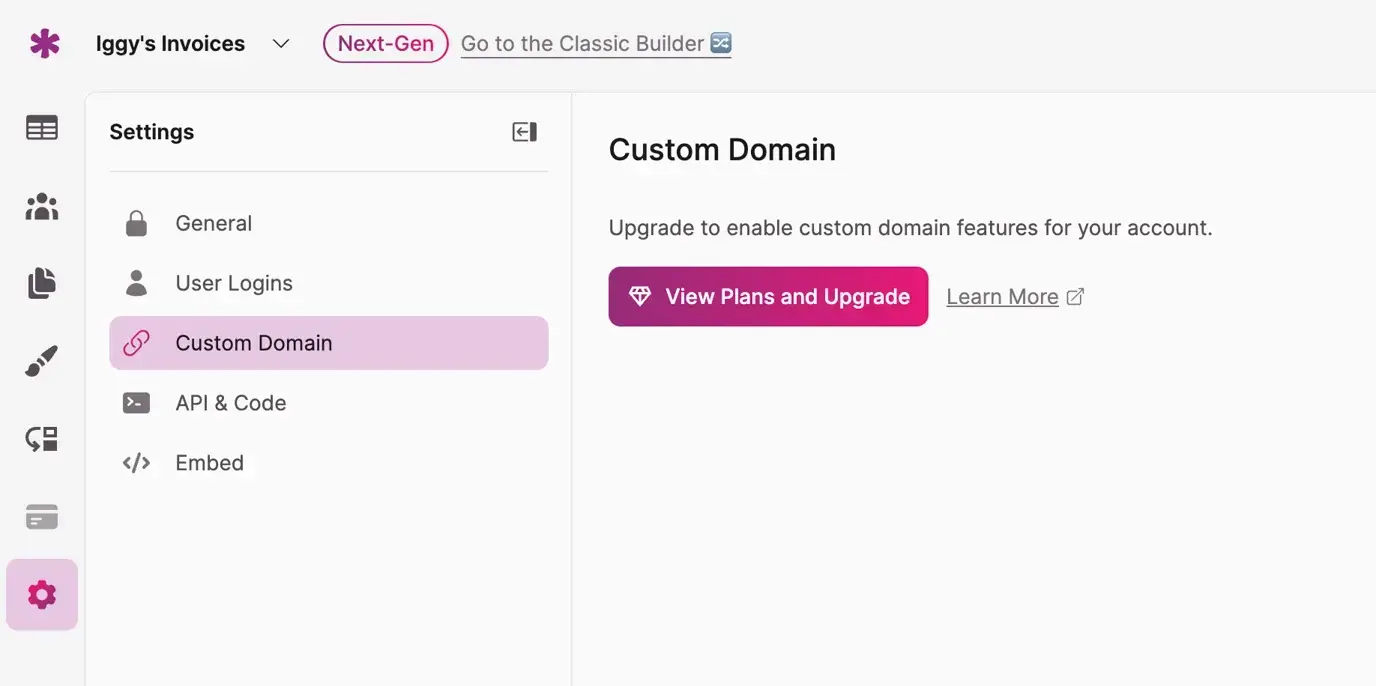 Note: Starter and Trial plans must upgrade to Pro to access custom domains.