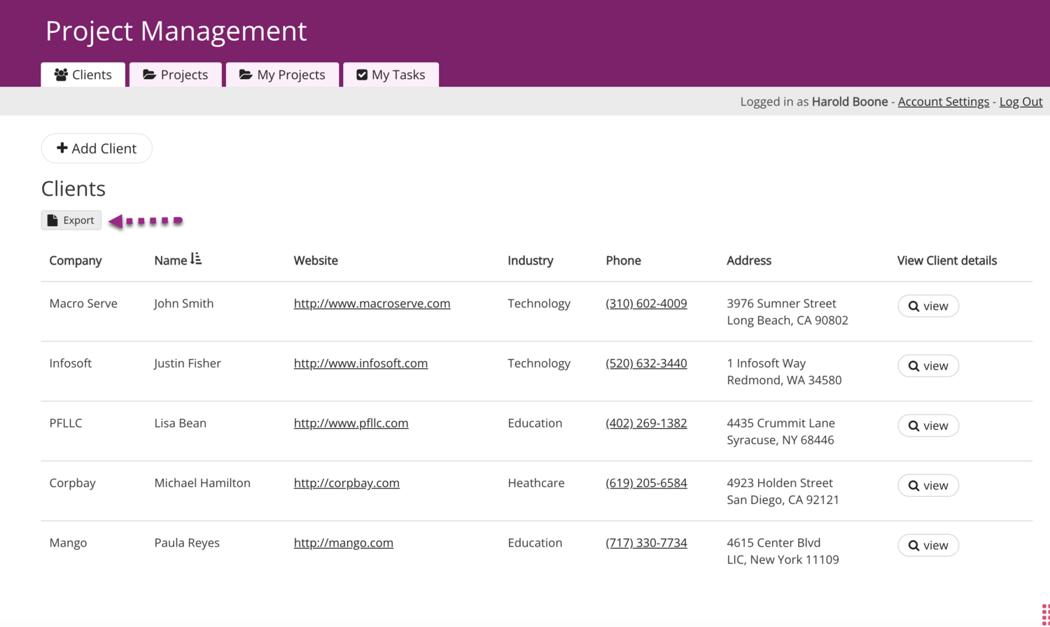 Exporting Names and Addresses