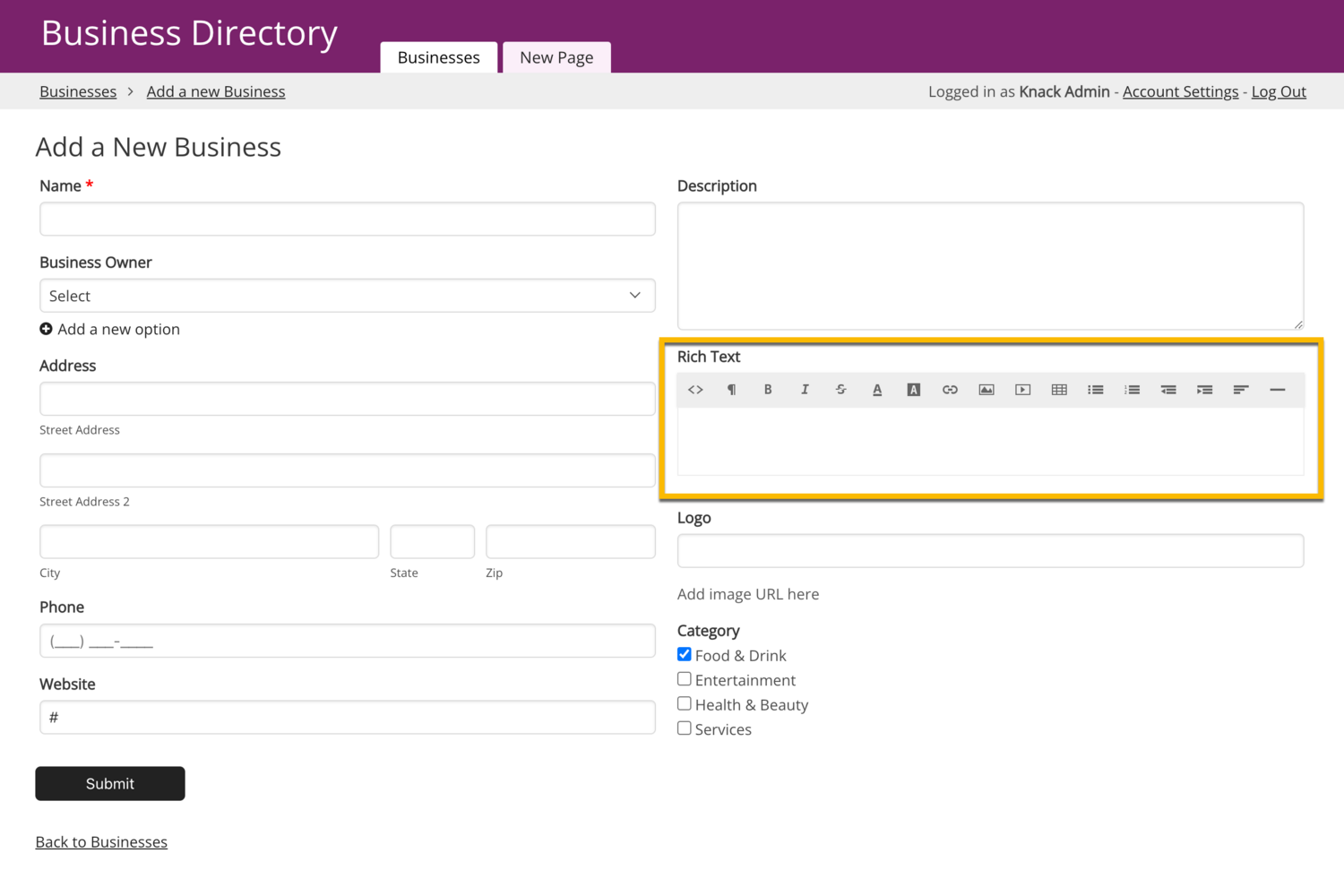 The same settings as Short Text and Paragraph Text field types apply to Rich Text fields.