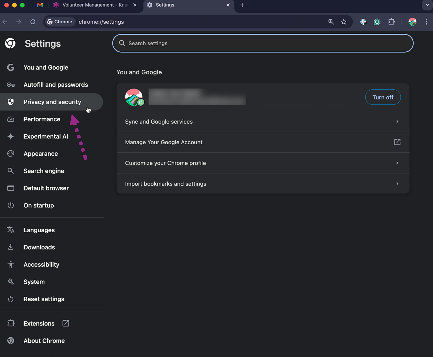 1. Click the three dots (⋮) in Chrome's top-right corner and select "Settings":