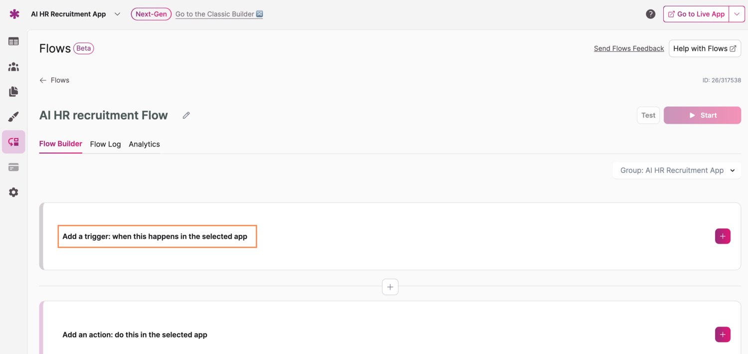 - Step 1: Trigger New Form Submission in Knack : When a candidate fills out and submits the form, it will automatically trigger the Flow.