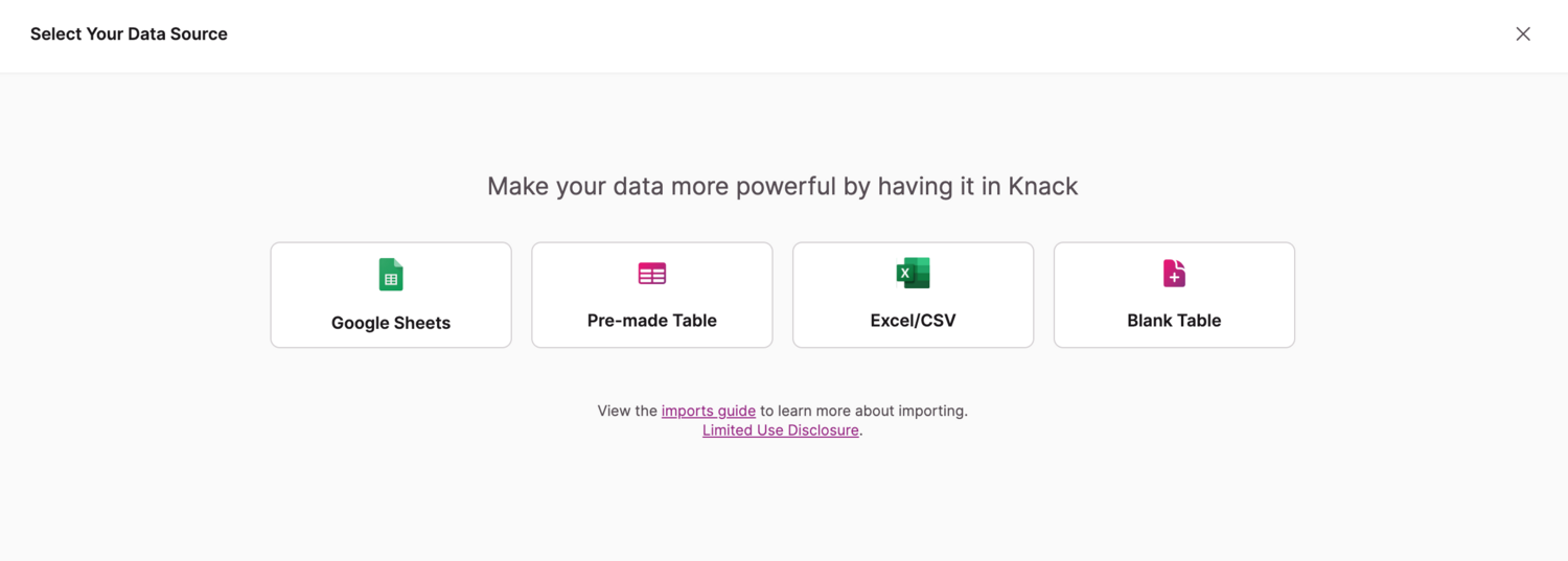 You can now easily import data from Google Sheets into your Knack application! This allows you to leverage data you already have in Google Sheets without needing to export and reformat it.
