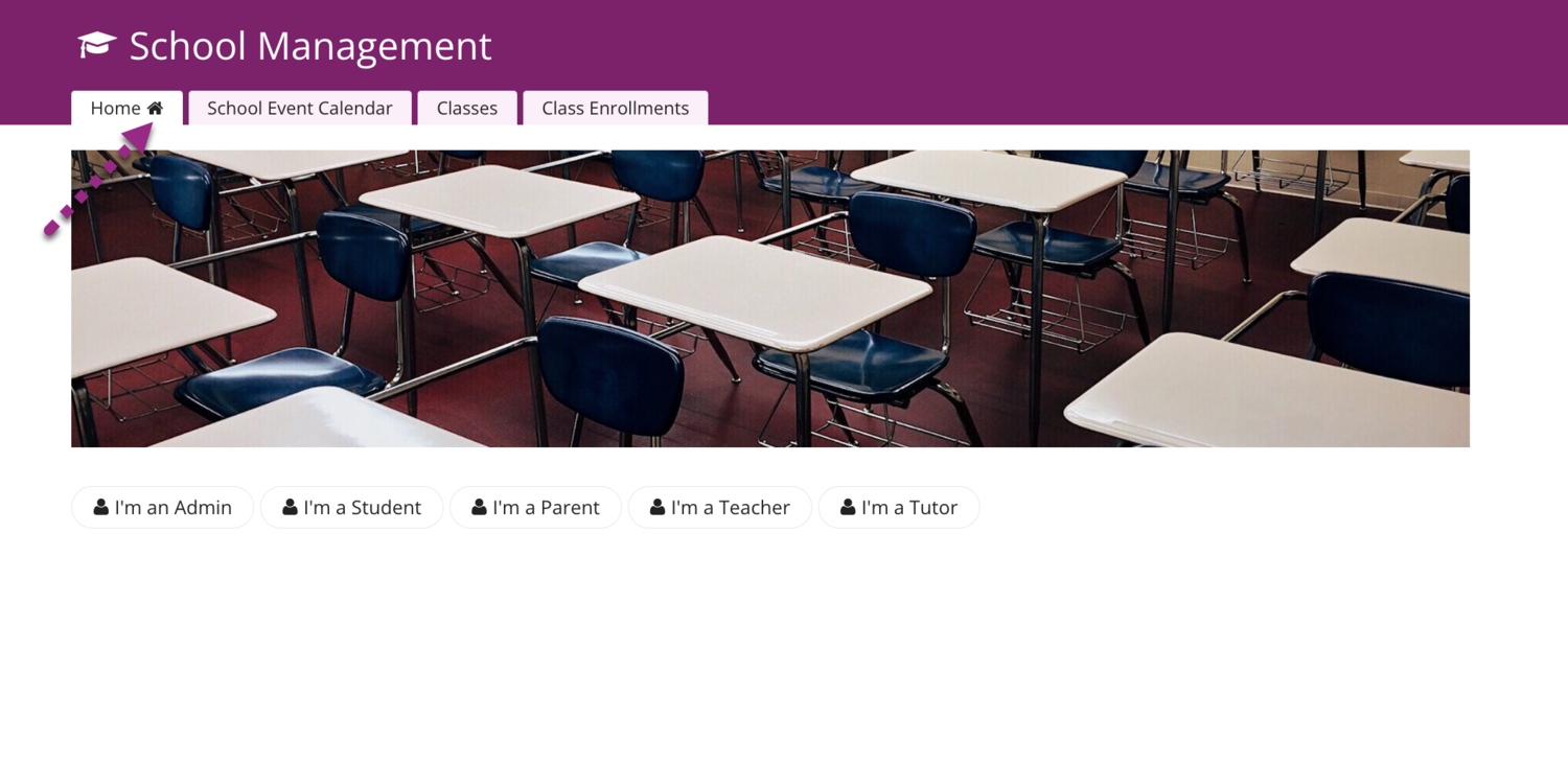 Every start page that you add is automatically included in the page menu by default. Below is an example of how a page menu appears in a Live App: