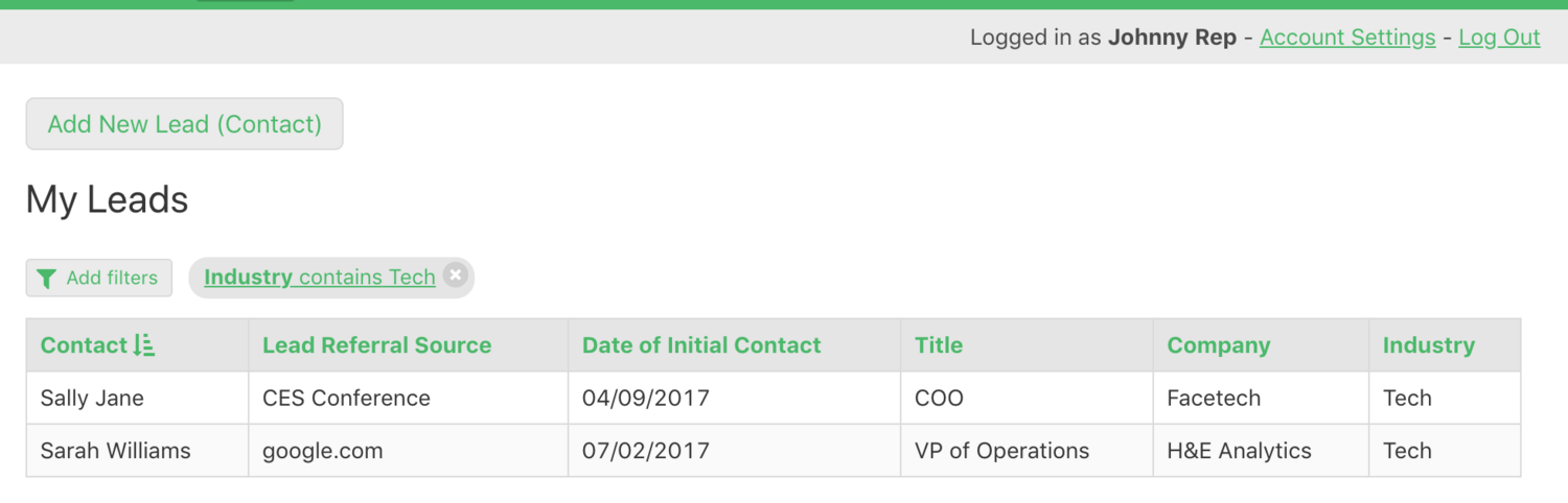 For example, you can build a grid only showing Lead records connected to that logged-in Sales Rep. This will allow users to search within this set of records without accessing records of other Sales Reps.