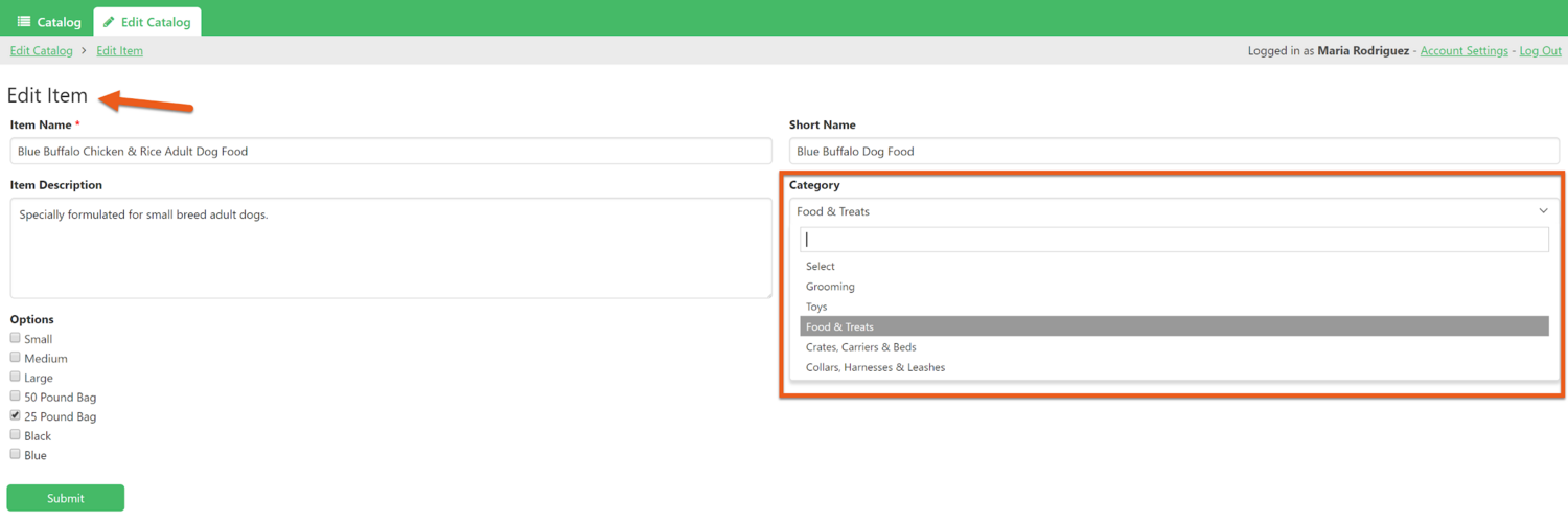 In the Product Catalog demo app, we have tables for Products and Categories . The Category table has only one short text field: Category Name.