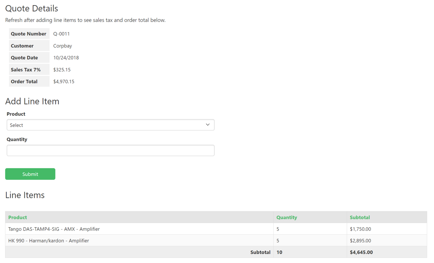 When a new order is created, it initially enters the quote stage. Once the customer accepts the quote, you can simply update the stage to invoice and add the line items accordingly.