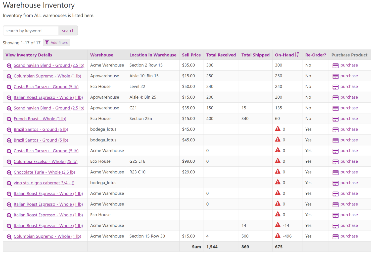 The Warehouse Inventory table provides us with precise information on the quantity of each Product available in every Warehouse.
