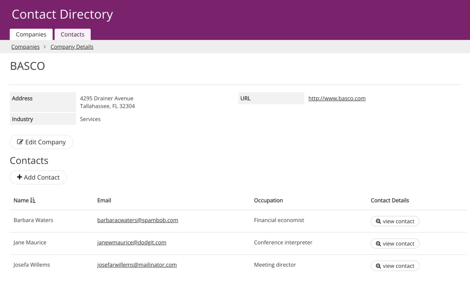 An effective way to utilize connections is to display connected records in your Live App. For instance, you can showcase all contacts that are linked to a specific company: