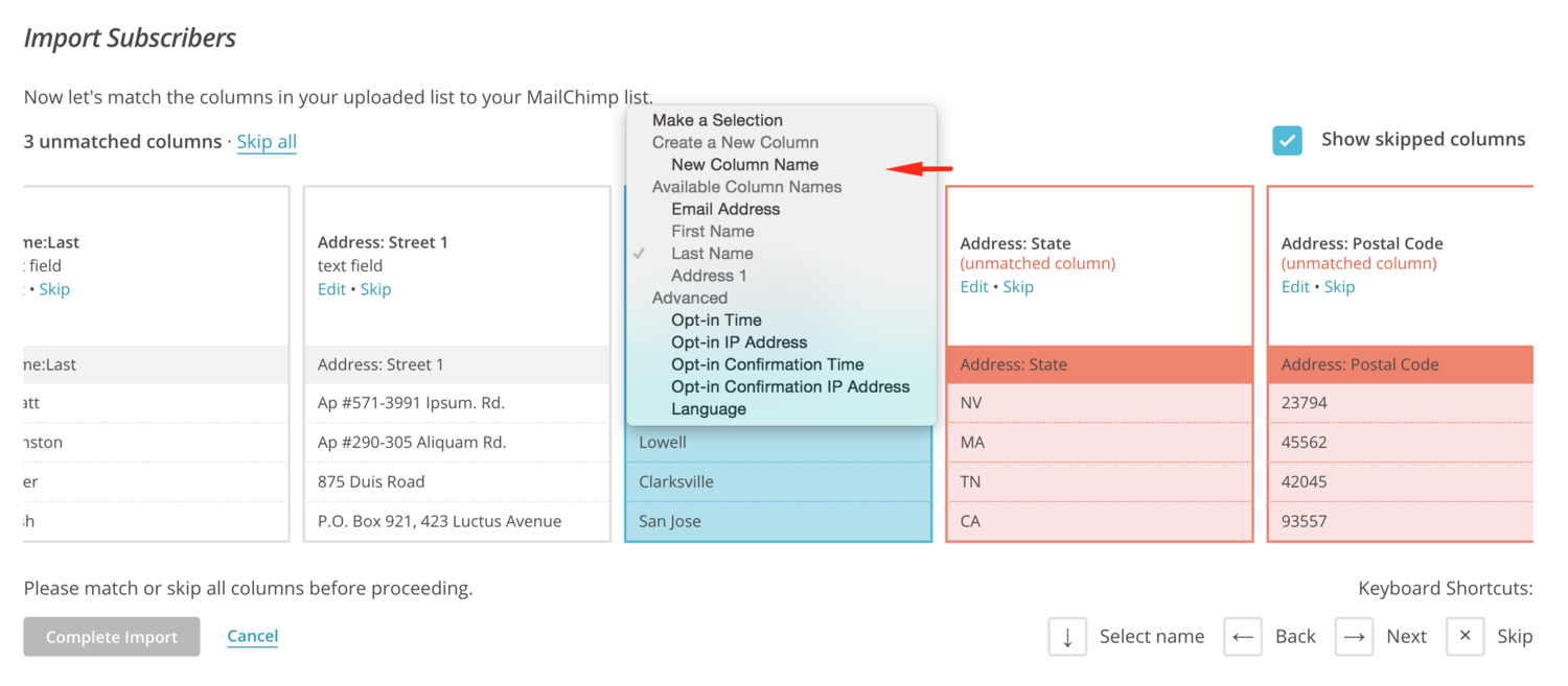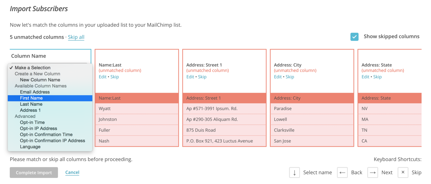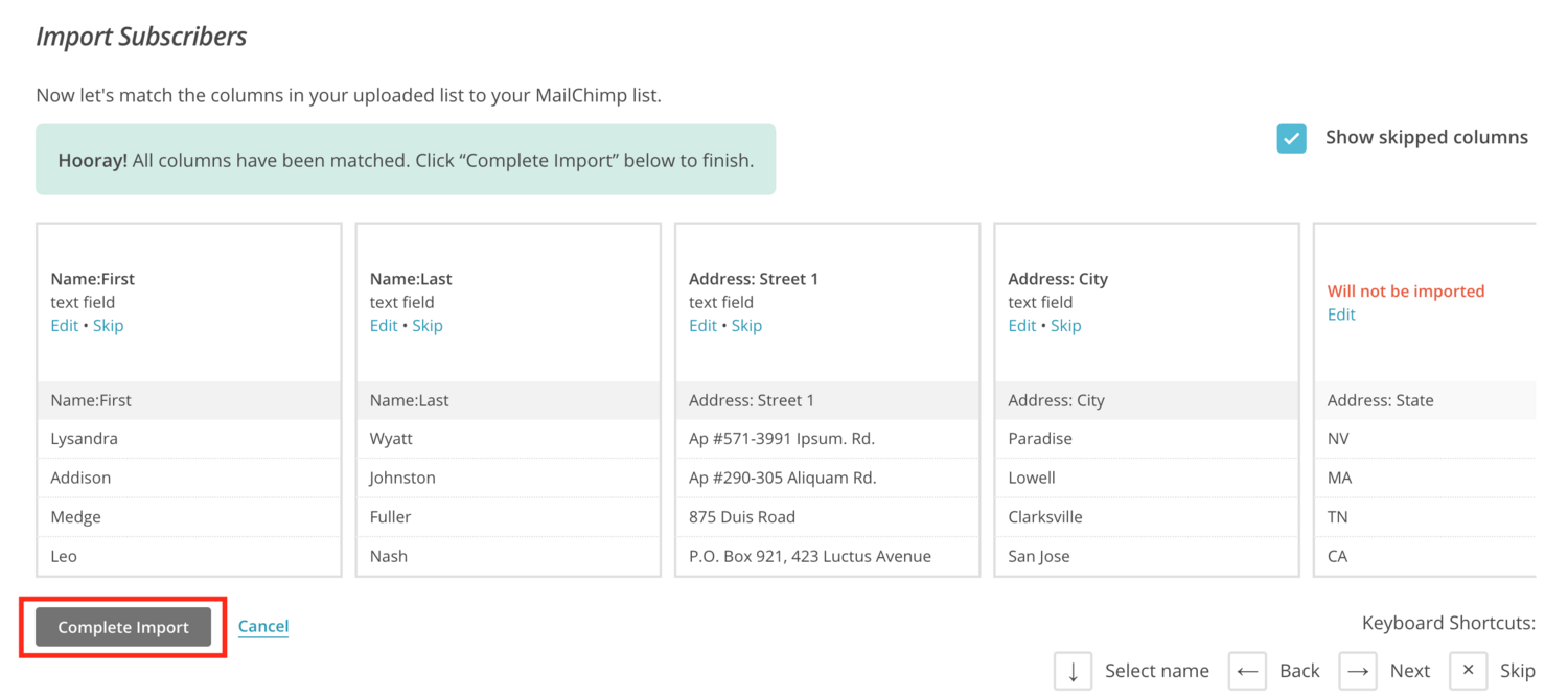 If you don't want to use the Knack field, you can Skip the field. Once you've mapped all your fields, you can select Complete Import.