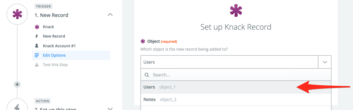 Zapier will list all of your App's tables. Select the Table you wish to use. In this example, we are using the table "Users."