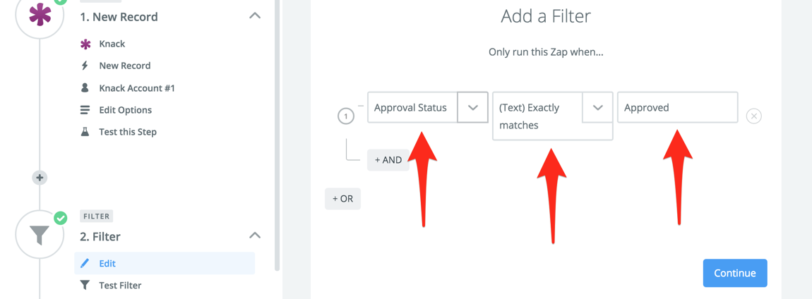 For example, you may only want "Approved" contacts to be added to our list. You can choose your field, a condition, and a value.