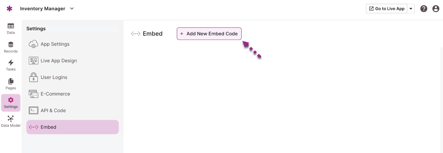Select the “Add New Embed Code” button.
