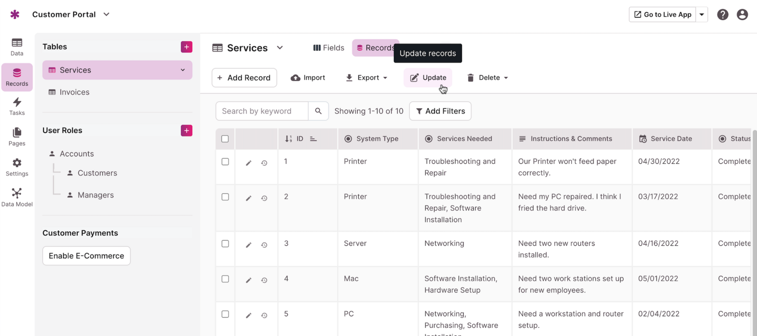 Similar to adding records, there is more than one way to update records in both the Knack Builder and the Live App.